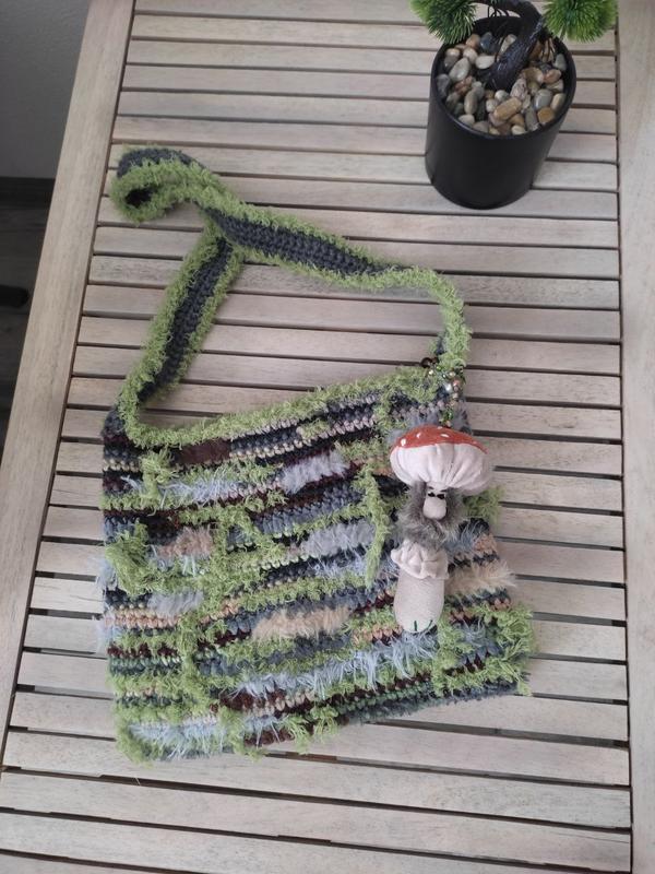 Сумка мох ручной работы с брелком грибом