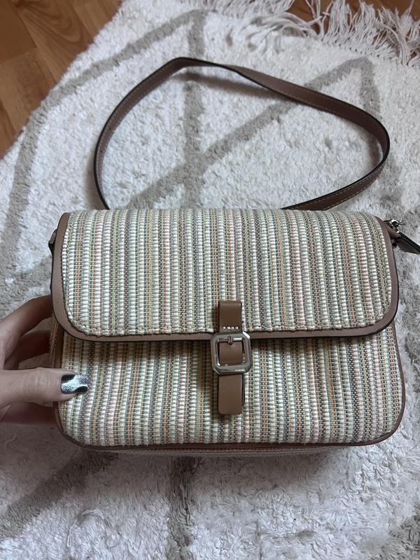 Состояние хорошее Очень вместительная Два отдела Один на замочке Ручка регулируется Плетёная ,но плотная ,даже если пустая хорошо держит форму