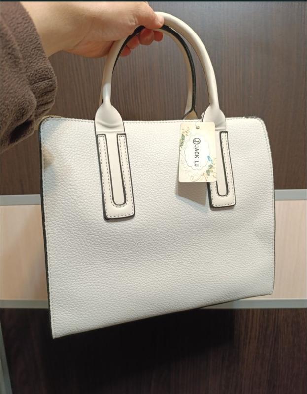 Стильная вместительная сумка молочного цвета с черным обрамлением, выполнена из экокожи. Длинный ремешок в комплекте. Сумка с отдельными тремя отделами. Замеры: ширина по низу 28 см, сверху 26.5 см, высота 24 см, глубина 10 см. Пересылаю укр новой почтой.