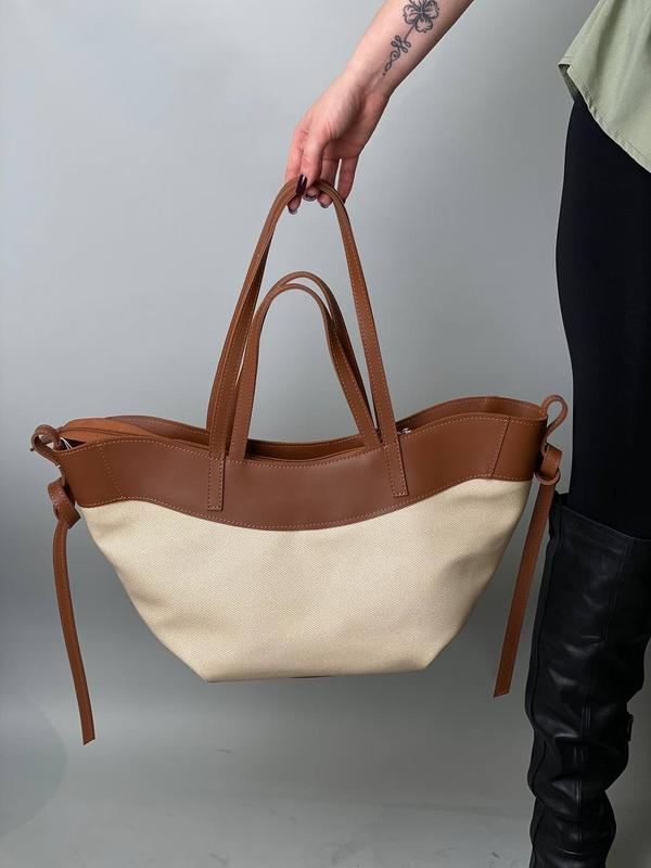 Жіноча повсякденна сумка Арт: 2447 Valetta Матеріал: текстиль/габардин та еко шкіра Розмір: висота 15 см, довжина зверху 50 см, довжина по дну 22 см, ширина виробу 13 см Висота ручок 20-28 см Три кольори в наявності Вартість 1299 грн