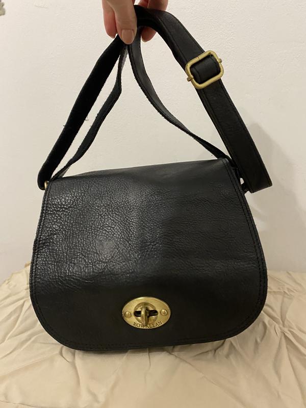 Сумка від бренду Rowallan з якісної добротної натуралтноі шкіри Закривається широким клапаном на поворотному замочку Одна довга ручка з регулюванням Загалом стан відмінний , єдине, на поворотному металевому замочку є подряпини Ширина 26 Висота 30 Глибина 7 Ручка макс 140