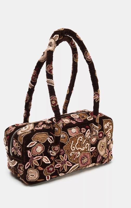 Вишита вілюрова сумочка Zara оригінал Висота: 14,17 см Ширина: 27,21 см Довжина: 14,24 см СКЛАД ЗОВНІШНЯ ОБОЛОНКА 100% поліестер