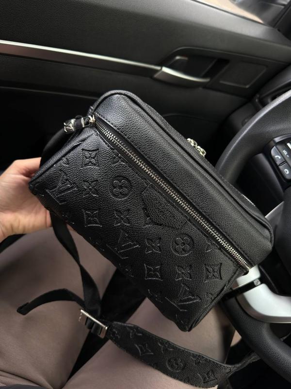 Черная компактная сумка через плечо из эко-кожи с тисненым узором, на молнии, с регулируемым ремешком. Стильная и удобная для ежедневного использования