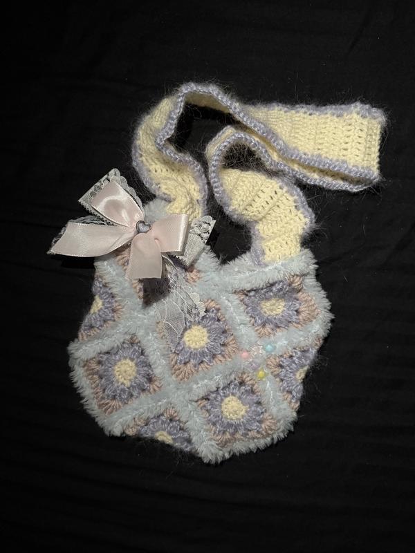 🌸 Pastel сумочка фіолетово-молочного кольору (лавандова) 🌸 Ручна робота 🌸Dreamy pastel lavender aesthetic 🌸 Декор: квітковий принт з бантиком 🌸 Розмір: 19х19 см
