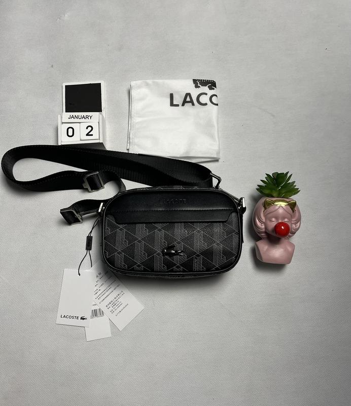 Нова сумка Lacoste Особливості: • Чорний колір з геометричним принтом • Металева фурнітура з гравіруванням LACOSTE • Регульований плечовий ремінь • Основне відділення на блискавці • Передня кишеня для дрібниць Комплектація: • Пильник для зберігання • Етикетки та документи бренду • Множинні логотипи Lacoste на різних елементах Ідеально для щоденного використання. Компактний розмір дозволяє носити необхідні речі, зберігаючи стильний вигляд.