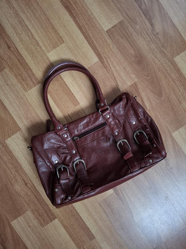 Винтажная женская сумка красивого оттенка бургунди. Выполнена из очень качественной эко кожи, на вид и прикосновение как натуральная. Все молнии работают, подкладка целая, возможно нуждается в химчистке. Трещи затёртости на углах, видны на последнем фото