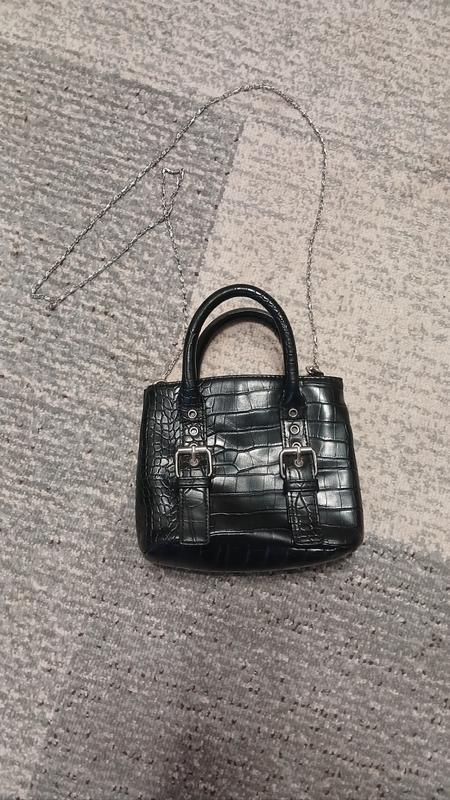 Очень классная женская маленькая черная сумочка, элегантная. Заміри на фото. Верх кожзам, внутри ткань. Состояние новой. Отпрашиваю