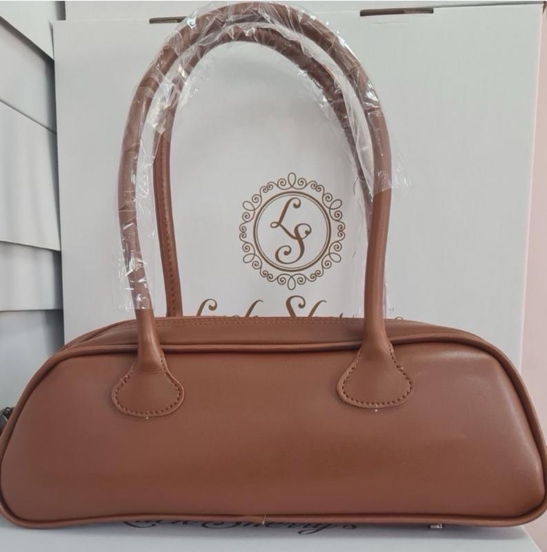 Сумка з еко шкіри подовженої форми, з довгими ручками