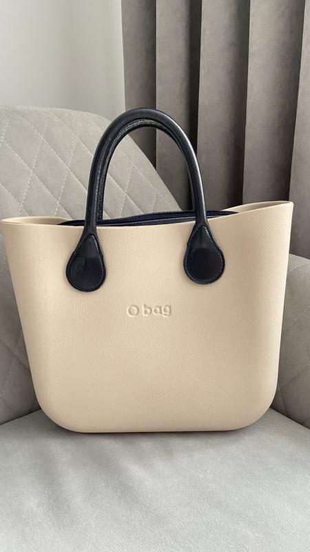Сумка O bag оригінал. Середній розмір. Без царапин в ідеальному стані. Ручки з екошкіри не потріскані. Колір корпусу бежевий, мішечок та ручки в темно синьому колірі.