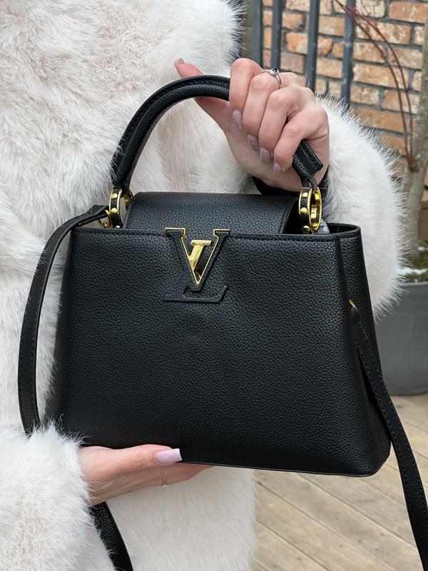 Сумочка Capucines BB Black/Gold🥹 ▪️Арт: 99678 ▪️Розмір: 26.5 х 18 х 9 см ▪️Матеріал: Шкіра 🔻Опис: Сумка виготовлена з зернистої шкіри.Має декілька відділень, також кишеню на застібці.Підкладка з гладкої червоної шкіри. Зачиняється сумка завдяки шкіряному капюшоні з магнітом. Фурнітура металева, брендована.Ремінець для носіння через плече має регулюєму довжину.Комплектується в фірмовому пильовику (в небрендовій коробці). Ціна: 3600грн Для замовлення у direct 💌