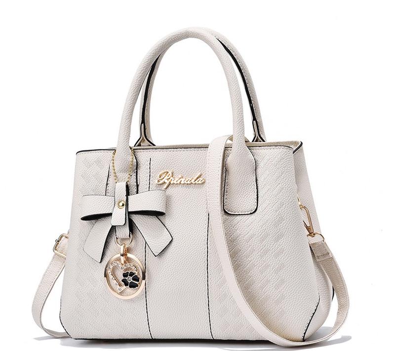сумка жіноча на плече з брелочком білого кольору