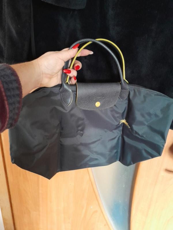 Сумка Longchamp Le Pliage Club в темном цвете с контрастной желтой отделкой на ручках и вышитым логотипом лошади. Основные характеристики модели: Материал: Изготовлена из прочного и легкого нейлона с отделкой из натуральной кожи с тиснением. Дизайн: Серия "Club" отличается цветными акцентами (в данном случае желтыми) на срезах кожаных деталей и вышивкой фирменного логотипа. Детали: Сумка имеет фирменную застежку-молнию с медальоном, изображающей скаковую лошадь, и кожаный клапан на кнопке. Универсальность: данная модель известна своей способностью складываться до компактных размеров, что делает ее удобной для путешествий и повседневного использования.