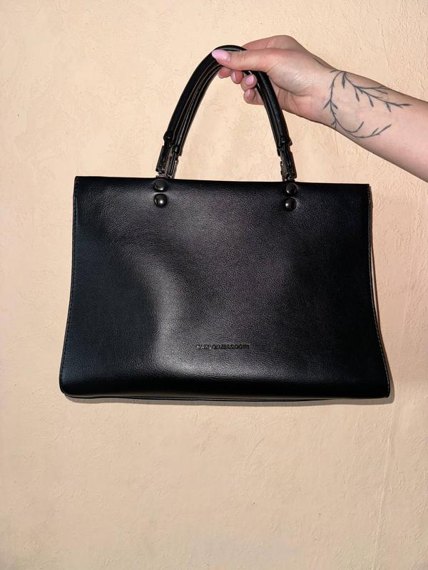 Сумка жіноча чорна Розміри -32 на 24 на 13 Має додатково ключницю та подовжуючий ремінець В середині 2 відділа,посередині під замком і 2 маленьких карманчика Є нюанси ,на останньому фото ,придавилась