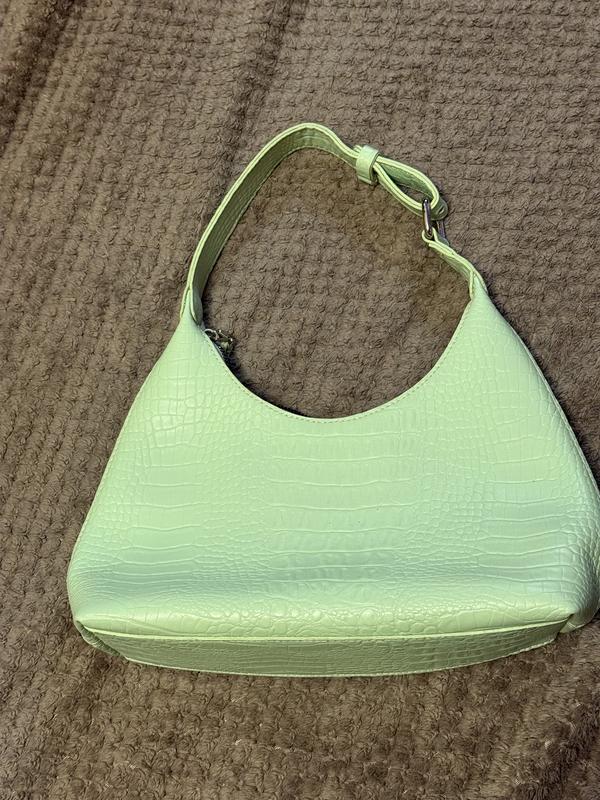 Сумка хобо м’ятного кольору з тисненням під крокодила. Компактна, на блискавці, зручно носити на плечі. Стан відмінний.