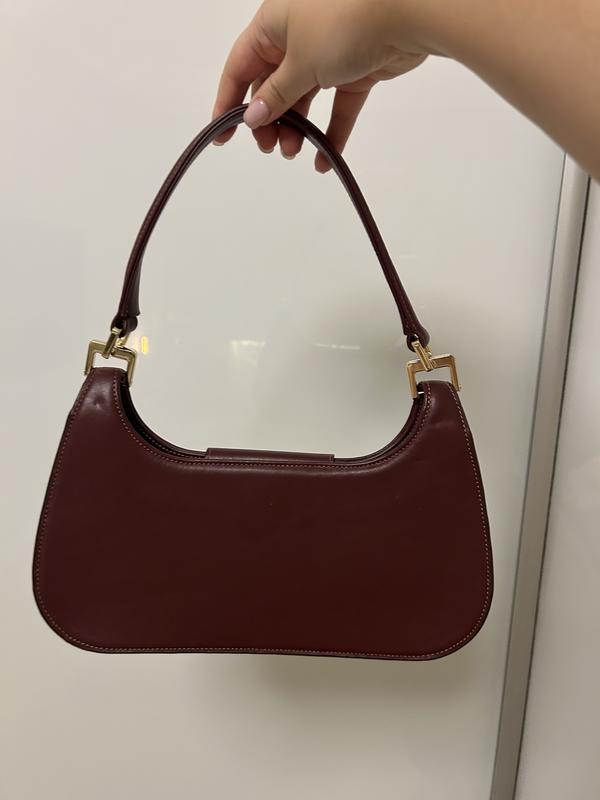 Сумка шкіряна, українського бренду, колір бургунді, має золоту фурнітуру, має невеликий розмір. Має дефект, показано на фото