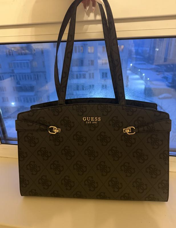 ОПИС ТОВАРУ (Сумка абсолютно нова та без пошкоджень, продаю бо завелика для мене, купувала на сайті Answer за 9,989 грн) Сумочка Guess LORELEI Велика сумка-тоут з колекції Guess. Застібна модель виготовлена з імітації шкіри, яку легко чистити та доглядати за нею. - Має три відділення, зокрема одне на блискавці. - Модель оснащена металевими ніжками для захисту дна сумки. - Тверде дно сумки дозволяє виробу тривалий час зберігати свою форму. - Ззаду є кишеня на блискавці для безпечного зберігання дрібних речей. - Має внутрішні кишені, в тому числі одну на блискавці. - Сумка для носіння через плече або в руках. - Довгі ручки. - Розрахована на формат А4. - Модель з підкладкою. - Кількість відділень на блискавці: 1. - Кількість відділень на магнітній застібці: 2. - Кількість внутрішніх кишень на блискавці: 1. - Кількість внутрішніх накладних кишень: 2. - Глибина: 15 ст. - Висота: 28 ст. - Ширина біля основи: 44 ст.