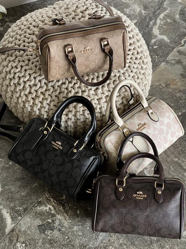 🤍🩶🤍🩶🤍🤍🩶🤍🩶 Сумка Coach Mini Rowan Crossbody In Signature Код 20598 Сумочка виготовлена зі структурованої еко-шкіри. Має одне велике основне відділення, всередині відкрита кишеня та ще одна на блискавці. Підкладка брендується, з нашитим логотипом Фурнітура металева, брендована. Розмір: 23.5х15х13см Матеріал: еко-шкіра Ремінець регулюється, максимальна довжина — 120 см.