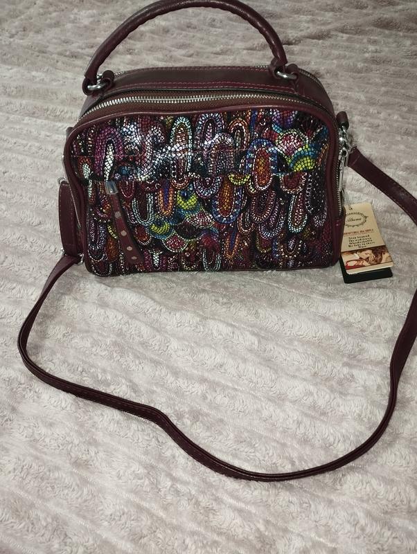 Новая сумка.Производитель Греция.Ширина-28см, высота 19см.Одное большое отделение, внутри по центру небольшое на замке, спереди и сзади тоже по одному отделению на замочке