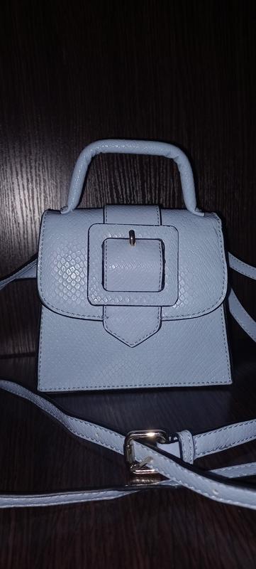 Сумка Zara оригинал - нежно-голубая, редкая модель Цвет: нежно-голубой / светло-голубой Форма: структурированная mini top-handle Фурнитура: золотая декоративная пряжка Ручки и ремешки: коротка ручка длинный ремешок через плечо ремешок для ношения на поясе (belt bag) Материал: тиснение под рептилию, качественный кожзаменитель ✔ Оригинальный (бирка с артикулом внутри: 5632/510/009) ✔ Состояние: почти новый, без дефектов ✔ Размер идеальный для телефона, кошелька, ключей 📦 Отправка по Украине / самовывиз