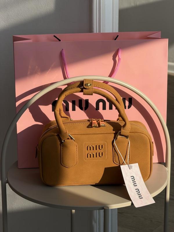 Жіноча сумка Miu Miu Arcadie Textile - Premium Всередині одне відділення, також є невеличка кишеня. Всі бірки та нашивки. Підкладка з щільного текстилю, є брендове металеве маркування. Вузький ремінець для носіння через плече, довжина регулюється Матеріал: замша Розмір: 23*12*8см ⭐️ Коробка та пильовик в комплекті