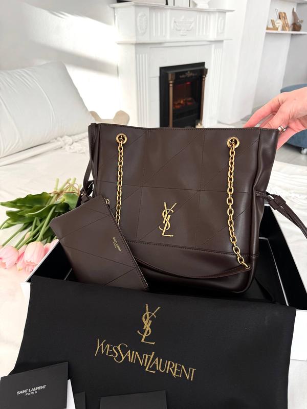 Yves Saint Laurent Jamie Chocolate Gold Арт. P5069 ▫️Ціна: 4600 грн ▫️Матеріал: шкіра ▫️Розмір: 30х26х10 см ▫️Довжина ланцюжків 67 см ▫️Всередині лого ▫️Брендований гаманець (всередині лого) ▫️Текстильна підкладка ▫️Металева брендована фурнітура ▫️Комплектується в брендовану коробку, пильовик, буклети.