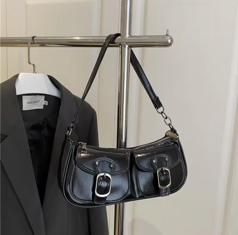 Сумка чорна З легким блиском🖤 Розмір26*11см Фурнітура сріблястого кольору! Має один відділ та дві малі кишені зовні! Екошкіра!