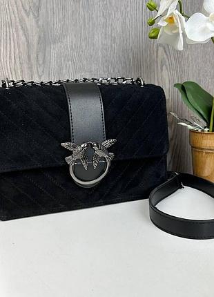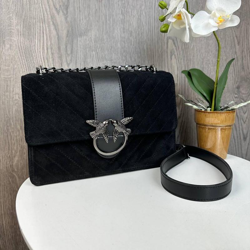 Материал: натуральная замша + экокожа премиум качества; Хорошо держит форму; Длина: 24 см; Ширина на основе: 8,5 см; Высота: 16 см; Ремешок: цепочка+вставка из экокожи (максимальная длина 140 см); Качественная металлическая фурнитура.