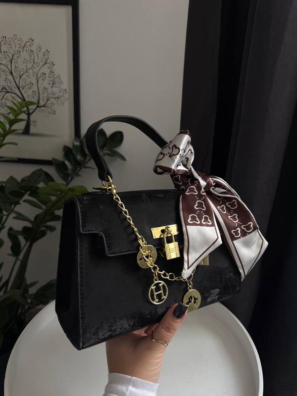 ✔️Додаткова інформація: Розмір: 21х14х8 Матеріал: екошкіра та фурнітура люкс якості Має одне відділення з кишенею. В комплекті: аксесуар, підвіска, платок, довгий ремінець