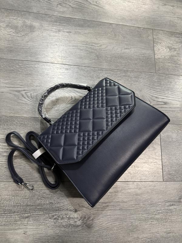 Жіноча сумка. Стан: новий. Колір: темно-синій. Матеріал: еко-шкіра. Застібка на магнітах. В комплекті йде ремінець. Всередині є кишені та підкладка. Розмір: 31х30.