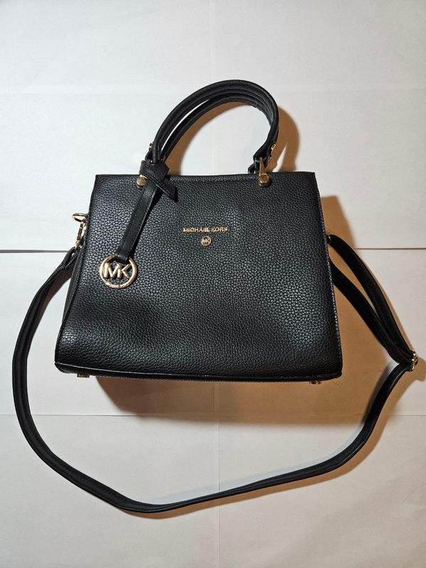 Сумка Cумка черного цвета, длинные ручки отстегиваются. В середине 3 отделения + 2 на молнии В идеальном состоянии. Размеры: - высота-23 см - ширина-10 см - длина ао низа-28 см, поверху-25 см