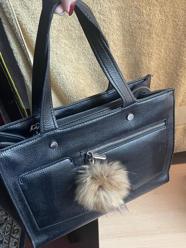 Чорна сумка з пухнастим брилочком Матеріал: Шкіра Розміри: 40х20
