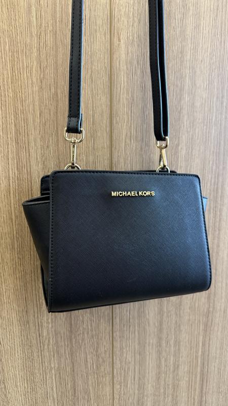 Чорна шкіряна сумка Michael Kors. Ширина - 22 см, висота - 16 см., глибина - 11 см.