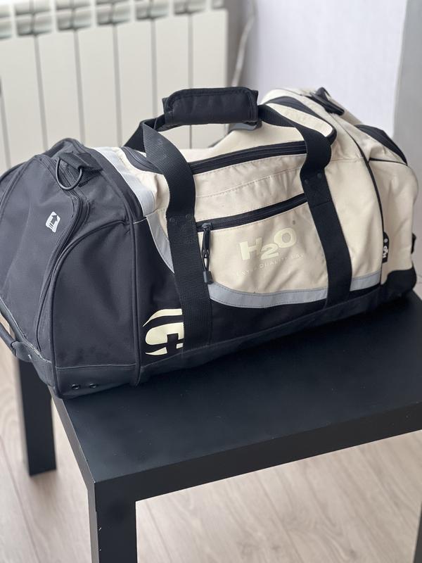 Продаю практичну та містку спортивну сумку в класичному поєднанні бежевого та чорного кольорів. Чудово підійде як для регулярних тренувань (зал, басейн, бокс), так і для коротких поїздок або як ручна поклажа. В чудовому стані