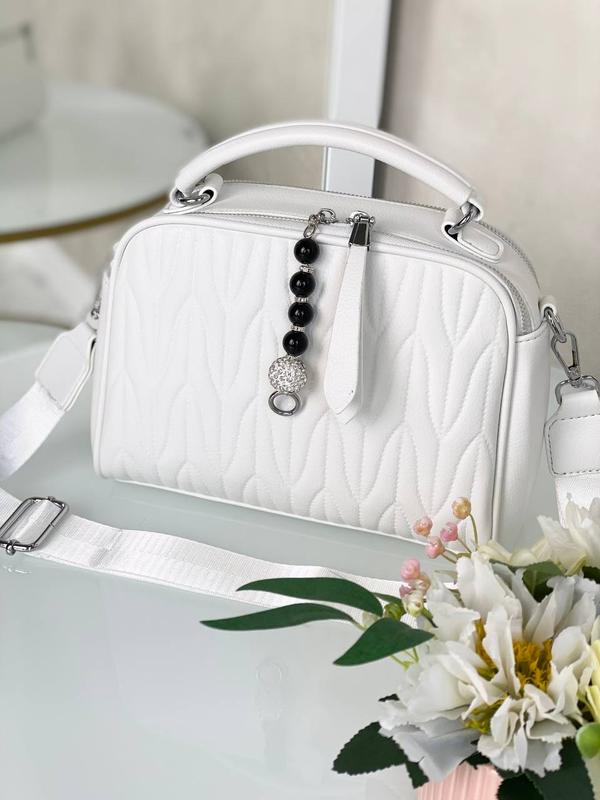 Жіноча сумочка Має два окремих відділи Коротка ручка ., довгий ремінець пристібається Арт 8589# Розмір висота 18 см , ширина зверху 23 см , дно 24*7 см Ціна 599 грн