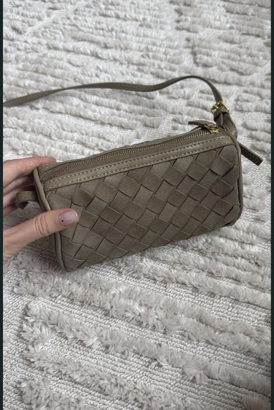 Стильна маленька замшева сумка, бежевого кольорову з довгим ремінцем