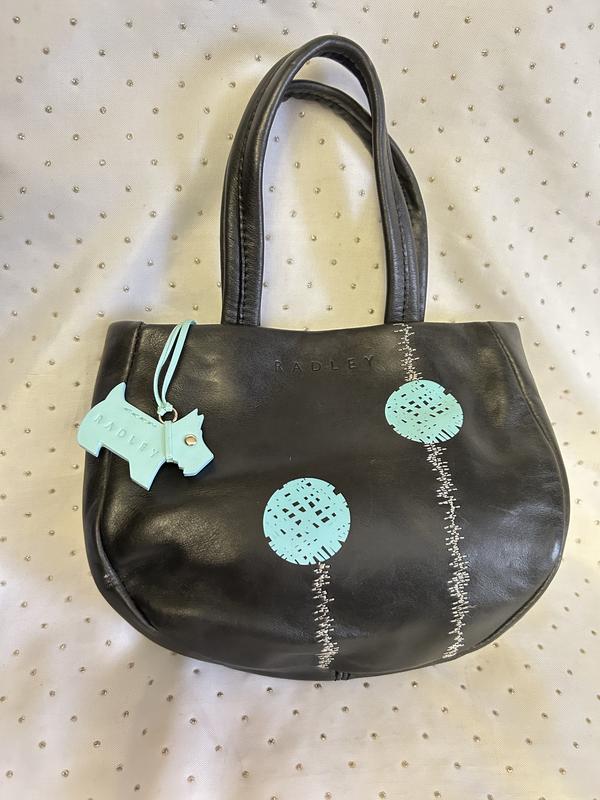 Небольшая бредовая кожаная сумочка для бной леди. Б/у, в отличном состоянии, без нюансов. На одно отделение на скрытом магните с боковым карманом на молнии и открытым боковым карманом. Цвет черный графит с бирюзовой отделкой. Р/р высота по центру 15 см, ширина по верху 18 см, ручки по 24 см, ширина дна около 5 см.