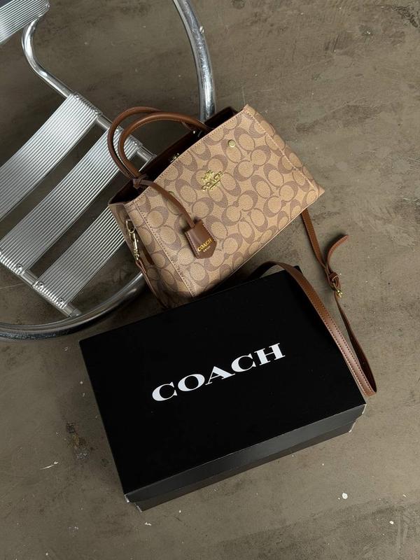 ▫️Сумка жіноча coach через плече ▫️Колір: чорний шоколадний молочний бежевий ▫️Сумочка має два основних відділення, усередині є одна відкрита кишенька, а по центру перегородка з кишенею на блискавці та биркою і QR-кодом ▫️Має нашитий логотип. ▫️Розмір: 25.5*19.5*12.5см ▫️Матеріал: еко-шкіра ▫️Пильовик і коробка в комплекті