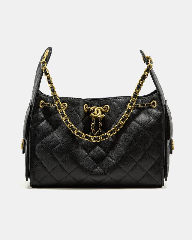 • Размер: 30 × 20 × 14 см • Материал: Натуральная кожа • Цвет: Черный • Фурнитура: Золотистая • Ремень: Плечевой ремень-цепочка с кожаной вставкой • Отделение: Основное отделение на завязке + внутренние карманы • Особенность: Стильная стеганая сумка Chanel в изящном дизайне - вместительная, элегантная и идеальная для ежедневного использования 505