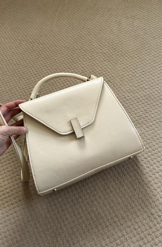 Сумка молочного кольору, тримає форму. ремінець регулюється. Є дефекти, вони усі на фото. Заміри теж на фото. Відправка Новою, Укрпоштою.