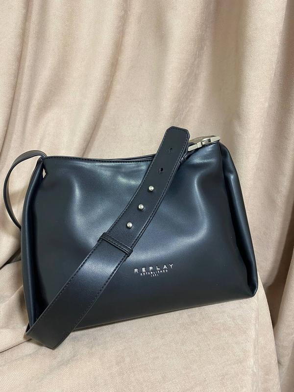 Цвет: черный Застежка: магнит Отделения/карманы (внутренние): одно отделение, один карман Декор: логотип Размер: 30х23х14 см Длина верхушки 25см Одна несъемная регулируемая ручка высотой 45см Бренд: Replay Пол: женский Модели сумок: на плечо 94 max,cм, 88 min cм длина ремешка состав Внутренняя отделка: 100% текстиль Состав: 100% полиэстер