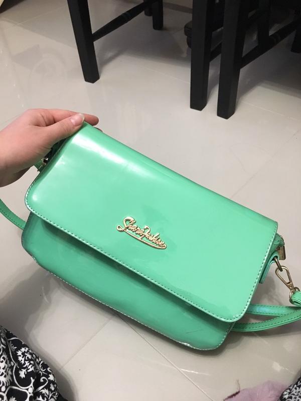 Лакова сумка. Вона досить зручна, поміщається гаманець і інші речі не дуже великих розмірів}. Звертайтесь!