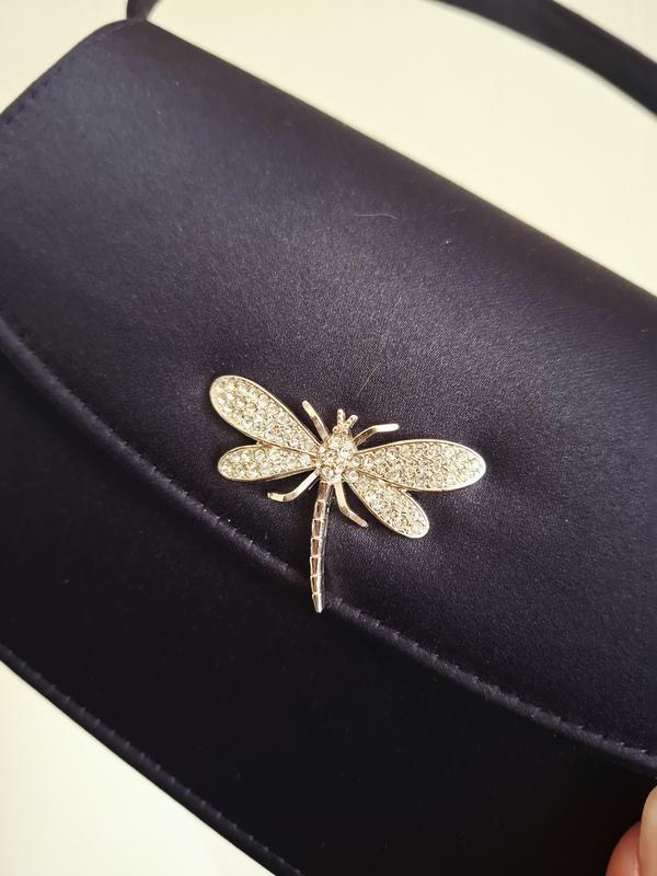 Маленькая сумочка глубокого синего цвета с серебристой бабочкой со стразами. , атласная, два отделения + кармашек. Застежка магнит, Длина 18см, высота 11см. Стан новой