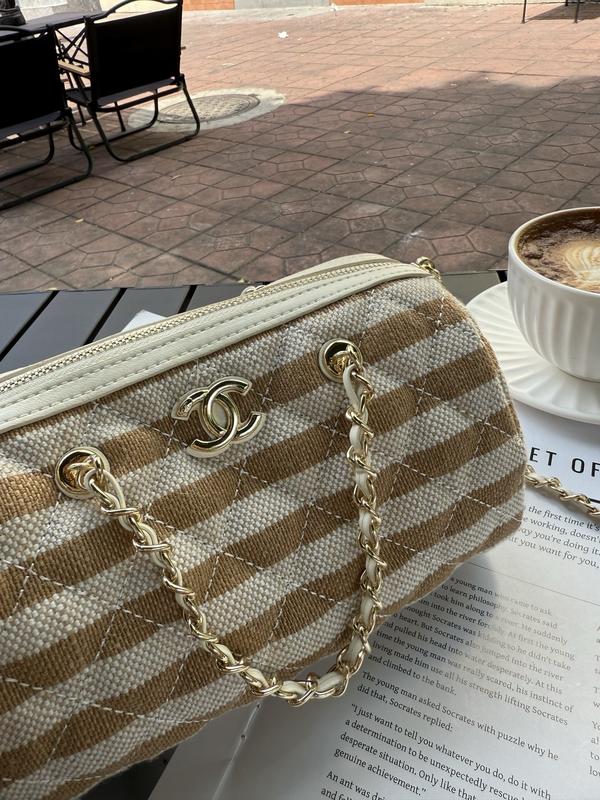 ✨ Яркий дизайн в контрастную полоску - идеальное сочетание casual и fashion ✨ Золотая фурнитура с двойным C + цепочка с кожей. ✨ Можно носить: в руке / на плече / crossbody ✨ Легкая, стильная и очень удобная на каждый день Размер: 18 × 10 × 11 см Материал: канвас + кожа 💰 Цена: 2500 + вес Пишите в дырект для заказа (то собачка) ninel_ray_bayer