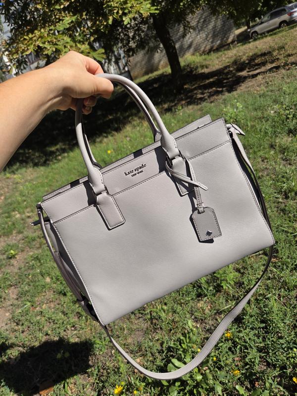 Серая сумка от Kate Spade, в которую вы влюбитесь сразу. Состояние 5/5, выходила 2 раза, заказывала в Америке. Сафьяновая кожа, без нюансов, цвет свет серый, номерной. Доп.фото скина, если нужно. Размер 32x25см, очень удобный размер.