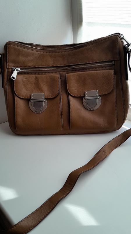 Сумочка Fossil из натуральной кожи в идеальном состоянии, свет бежевый коричневого цвета, замеры: ширина 30, высота 23, плечевой ремень 122 (регулируется), очень удобная и вместительная, имеет одно отделение на молнии, внутри есть кармашки. Спереди есть карман на молнии и два отдельных карманчика для мелочей. Очень качественная серебряная фурнитура безложений. Станет вашей любимой аксессуаров. Вообще для меня, фирма Fossil то ❤️❤️❤️