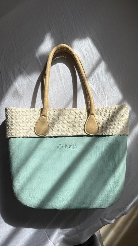 Оригінал, сумка від O bag, виготовлена в Італії. Гарний колір Тіфані, на літо, супер! Стан ідеальний, ручки не потріскані, єдине є незначні забруднення на самому резиновому корпусі, потрібно протерти. Розміри: висота: 33 см, довжина повністю ручки від краю до краю: 69 см, ширина: зверху: 43 см, по центру: 39 см, знизу: 35 см.