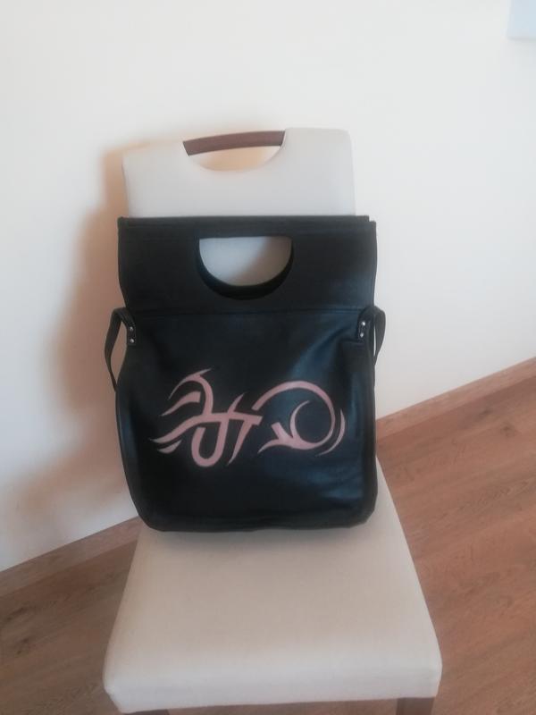 С натуральной кожи, ручная работа. Новая,эксклюзив. Ширина 36,высота45.,глубин 15.длина ручки 90 см.