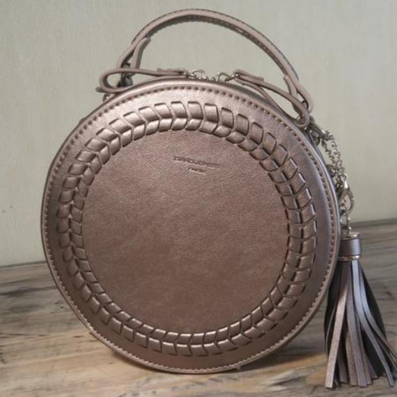 идеальное состояние! кисточка отстёгивается. есть длинный ремешок,регулируемый. обалденный цвет,серебристо - пудровый!
