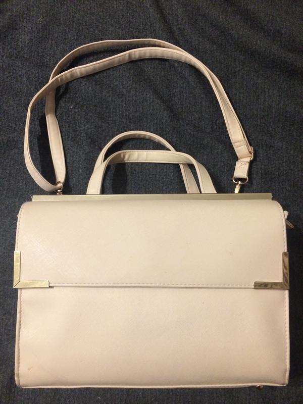 Имеются дефекты с боку подертости и потёртости,подкладка порвана, визуально не заметно, нежно розового цвета высота 24 см глубина 9 см длина 32 см на 2 отделения очень вместительная