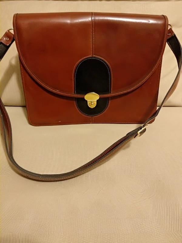 Сумка.винтаж,из натуральной, качественной,полированной кожи ,в оригинале выглядит лучше ,чем на фото,цвет немножко темнее,два отделения и два карманчика на молнии,углы ,ремень-ручка целые,ручка из кожезаменителя,размер: высота 24,5 см,длина 30 см,ширина дна 7 см,длина ручки 80 см .